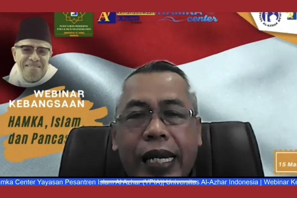 Pusat Kajian Penerapan Etika dan Nilai Keislaman (PKPENK) Universitas Al Azhar Indonesia (UAI) bekerja sama dengan Hamka Center Yayasan Pesantren Islam Al Azhar (YPIA) dan Direktorat Kemahasiswaan dan Alumni (DKA) UAI menyelenggarakan Webinar Kebangsaan dengan bertemakan “HAMKA, Islam, dan Pancasila”.