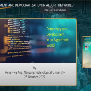 ‘’Maka dalam konteks pembangunan demokrasi, misalnya, dibutuhkan refleksi, pendekatan dan pemahaman yang terus menerus diperbaharui dalam melihat hubungan dunia digital dengan demokrasi dan pembangunan sosial politik,’’ kata Ang. Menurutnya, ada beberapa tantangan terkait algoritma dan AI yang harus dicermati. Misalnya soal ketersediaan data dan kesadaran diri.