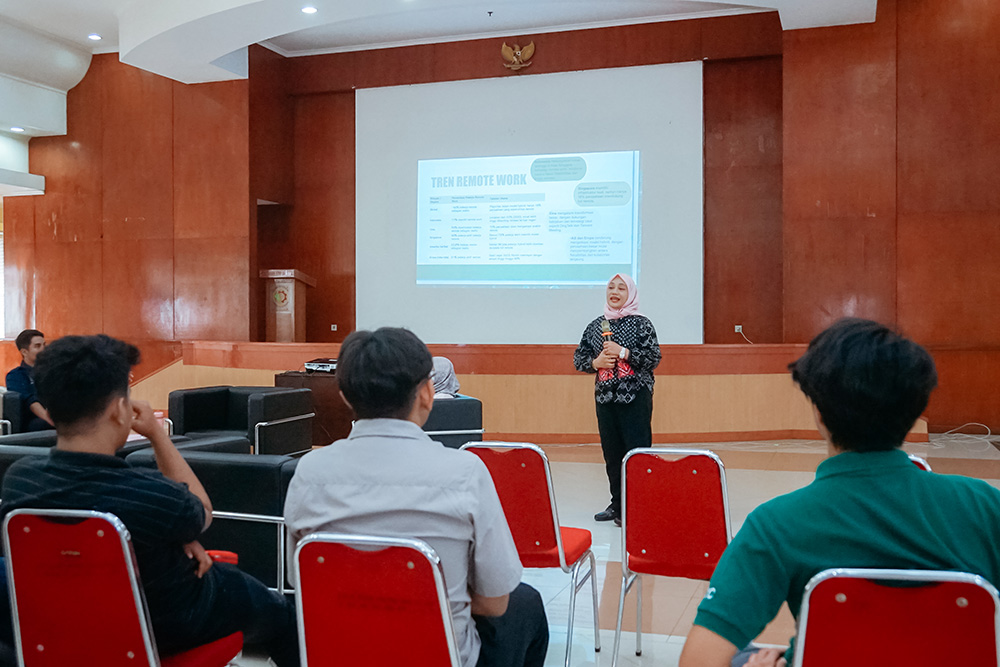 Sebagai pembicara pertama, Niken Parwati memaparkan materi seputar membangun karir di dunia kerja yang semakin fleksibel. Ia menyebutkan bahwa tren remote working meningkat pesat. Saat ini Indonesia menjadi negara dengan minat tertinggi terhadap remote work di Asia Tenggara, yakni sebesar 71%. Menurutnya, perubahan ini didorong oleh digitalisasi dan perkembangan teknologi Artificial Intelligence (AI). Ia juga menjelaskan skill penting yang harus dimiliki, strategi bertahan di industri digital, hingga tips sukses dalam dunia kerja jarak jauh.