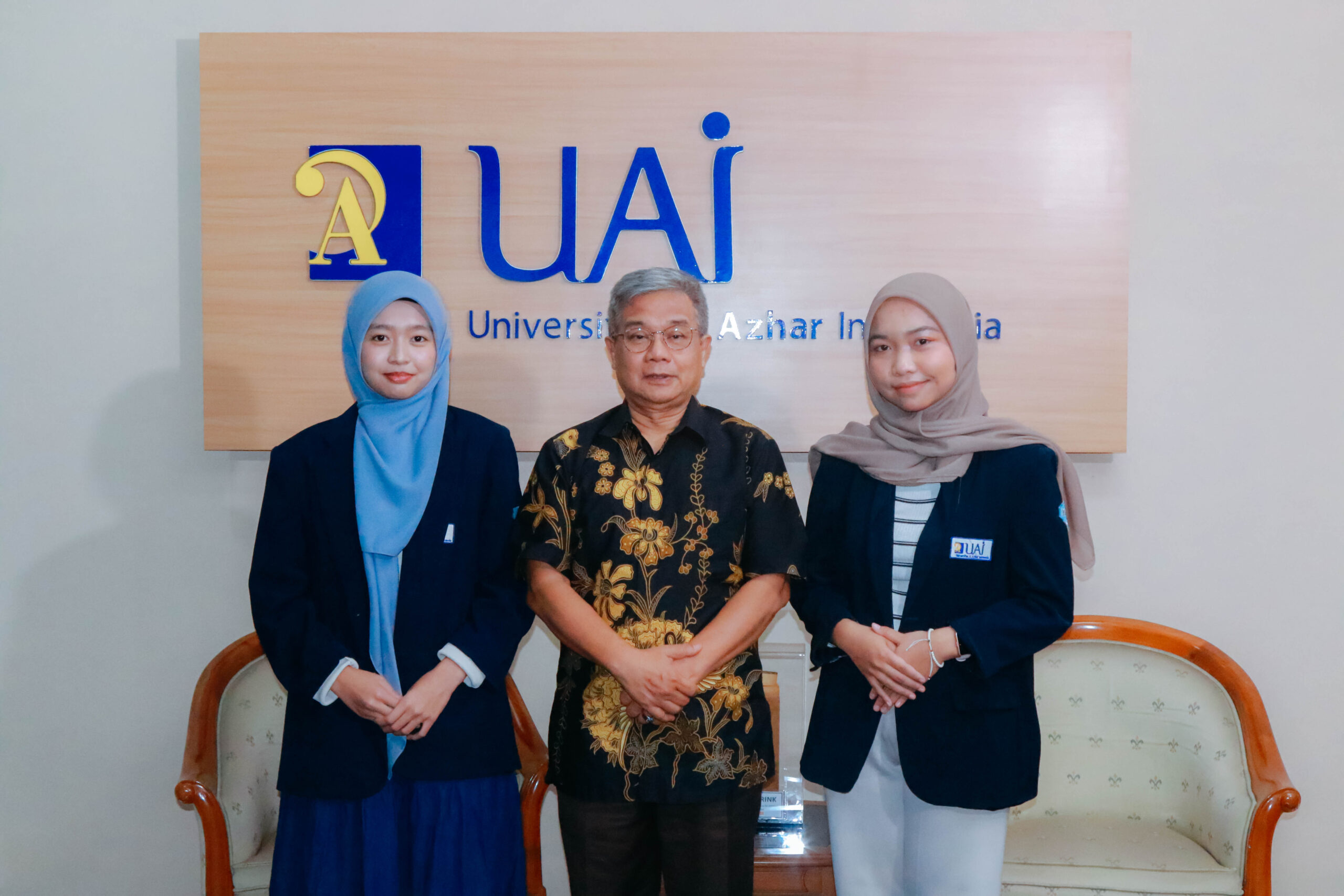 Pelepasan peserta dilakukan pada Kamis, 26 Juni 2025 di Ruangan Rektor, Universitas Al-Azhar Indonesia. Kegiatan ini dipimpin langsung oleh Rektor UAI, Prof. Dr. Ir. Asep Saefuddin, M.Sc., yang memberikan arahan serta dukungan kepada kedua mahasiswa. “Semoga bisa menjaga nama baik Al-Azhar, disiplin, dan mampu berkolaborasi dengan mahasiswa dari berbagai perguruan tinggi di Indonesia,” pesan Rektor.