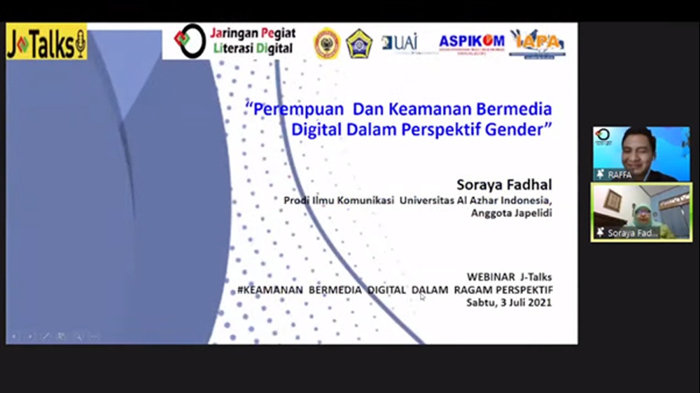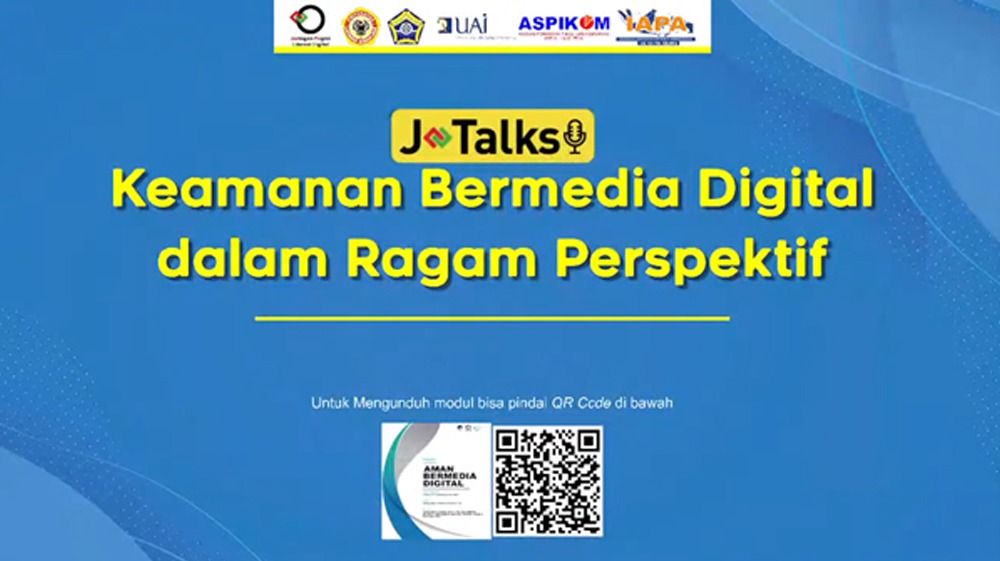 Webinar JTALKS telah usai digelar pada Sabtu 3 Juli 2021 lalu, dan acara ini juga diadakan bersama kolaborasi berbagai institusi pendidikan yang salah satu penggeraknya adalah Universitas Al-Azhar Indonesia (UAI). Bekerjasama dengan Asosiasi Pendidikan Tinggi Ilmu Komunikasi (ASPIKOM), Indonesian Asscociation for Public Administration (IAPA) serta lembaga – lembaga lainnya, tujuan kegiatan Webinar ini untuk melihat berbagai pemikiran tentang keamanan bermedia digital dari sudut pandang anak, perempuan, penyandang disabilitas serta kebijakan publik terutama untuk area 3T.