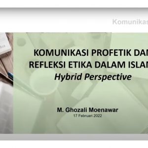 Melanjutkan kegiatan Diskusi Serial Epistemologi Islam, Bapak Ghozali Moenawar berkesempatan untuk memaparkan materinya dengan menyoroti salah satu keilmuan yakni Komunikasi Profetik. Disampaikan bahwa komunikasi profetik merupakan suatu keniscayaan ilmu pengetahuan sebagai upaya rekonsiliasi dan counter bagi perkembangan teknologi komunikasi saat ini yang bertujuan untuk mengisi kelemahan komunikasi yang cenderung parsial, mengarahkan pengembangan dan keutuhan ilmu komunikasi, serta menciptakan dan memperkaya nilai-nilai komunikasi.