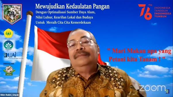 Rektor Universitas Al-Azhar Indonesia (UAI), Prof. Dr. Ir. Asep Saefuddin, M.Sc. menyuarakan kedaulatan pangan dalam meraih tujuan serta cita-cita kemerdekaan. Hal ini dituangkan dalam webinar “Mewujudkan Kedaulatan Pangan” yang mengangkat topik “Dengan Optimasi Sumber Daya Alam, Nilai Luhur, Kearifan Lokal dan Budaya Untuk Meraih Cita Cita Kemerdekaan”. Webinar ini diadakan oleh BUMR Paramasera serta berkolaborasi dengan UAI, Universitas Pakuan (UNPAK), dan bertujuan untuk mengedukasi publik mengenai kedaulatan pangan.