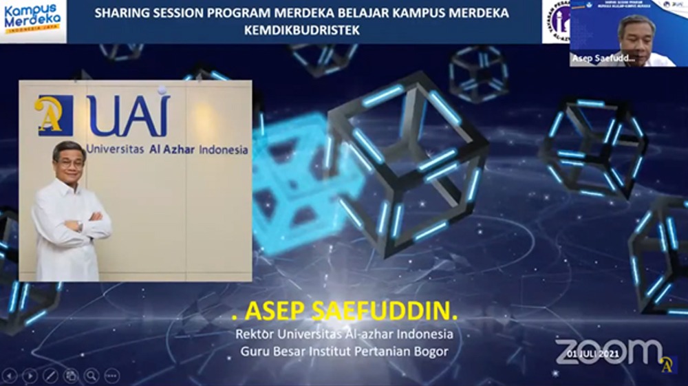 Diskusi yang diadakan secara daring ini turut dihadiri oleh Rektor Universitas Al-Azhar Indonesia, Prof. Dr. Ir. Asep Saefuddin, M.Sc. beserta jajaran Wakil Rektor dari bidangnya masing – masing. Webinar Session ini dibuka dengan sambutan dari Prof Asep selaku Rektor UAI yang juga merupakan Guru Besar Institut Pertanian Bogor (IPB) dan dilanjutkan dengan pemaparan singkat mengenai Program Kampus Merdeka itu sendiri.
