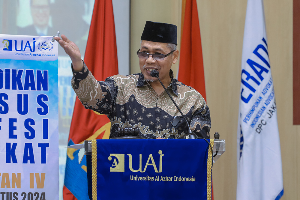 Dekan Fakultas Hukum Universitas Al Azhar Indonesia (FH UAI), Dr. Yusup Hidayat, S.Ag., M.H., menyampaikan sambutan bahwa Pendidikan Khusus Profesi Advokat (PKPA) Peradi DPC Jakarta Barat telah diselenggarakan sebanyak empat kali. Dalam sambutannya, beliau menyampaikan program ini dapat memperbaharui pengetahuan para peserta seputar ilmu hukum, serta dapat mendekatkan teori dan praktek hukum di Indonesia. Tidak hanya itu, pada kesempatan ini beliau mempromosikan Progran Studi Hukum Program Doktor (S3) Fakultas Hukum UAI yang sebentar lagi akan dibuka. Rektor UAI, Prof. Dr. Ir. Asep Saefuddin, M.Sc., turut memberikan sambutan bahwa penyelenggaraan kelas PKPA Angkatan IV merupakan kerjasama yang kesekian kalinya antara DPC Peradi Jakarta Barat dengan UAI. Menurut beliau, Peradi sudah sangat berpengalaman dalam mencetak para advokat yang berkualitas. Melalui pelatihan ini, para calon advokat dapat semakin meningkatkan keahlian, profesionalisme, dan integritas. “Selain belajar mengenai hukum, kita juga dapat belajar dari kitab Al Quran mengenai hukum, sehingga kita mendapatkan pengetahuan selain hukum secara sekuler, juga hukum Islam dalam hal penegakkan keadilan”, pesan Rektor kepada para peserta.