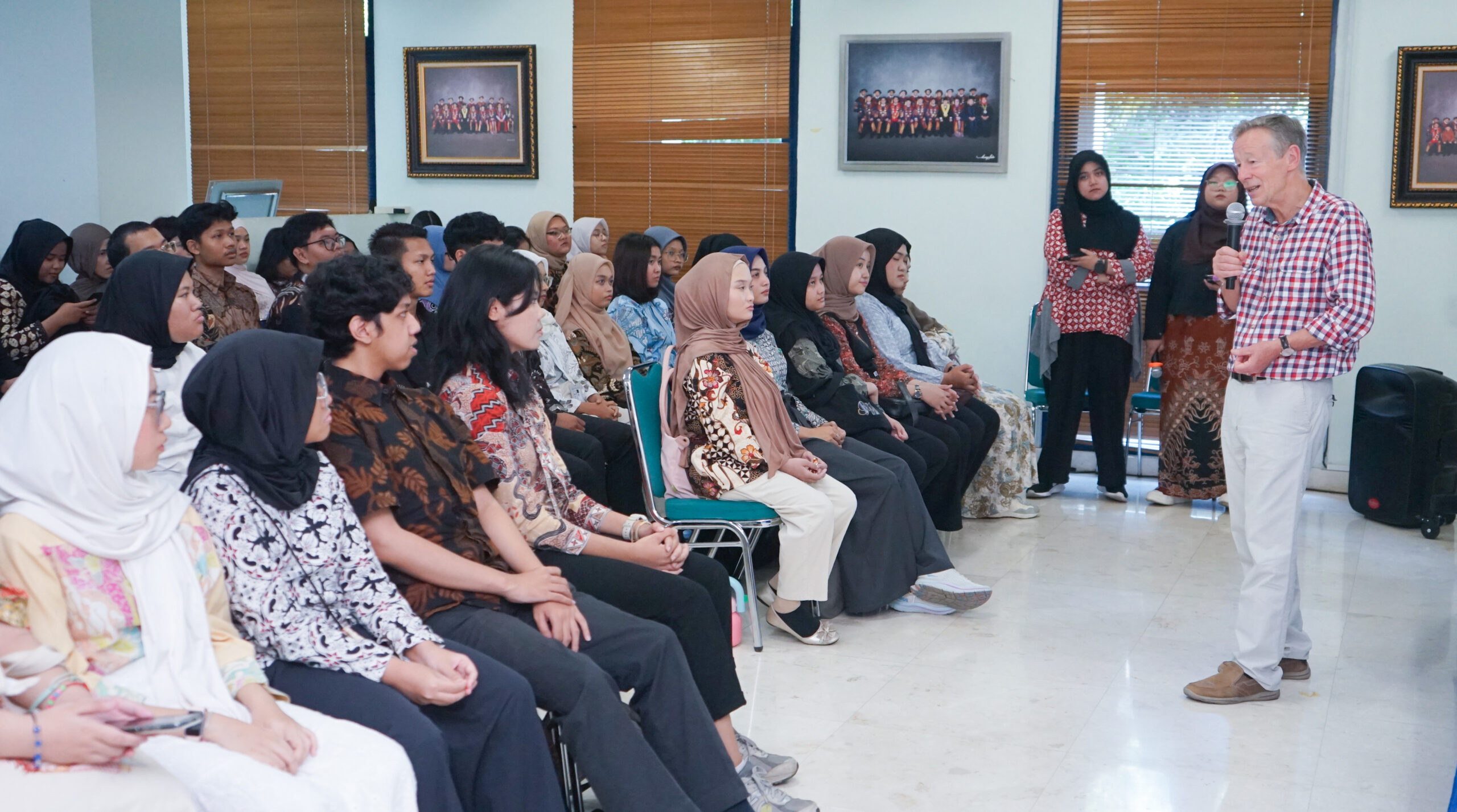 Dr. Martin Lamb memulai sesi kuliah umum dengan pertanyaan: “Mengapa banyak orang Indonesia belum bisa berbahasa Inggris?” Ia menjelaskan bahwa penyebab utamanya bukan karena kurangnya ketertarikan, melainkan karena banyak orang hanya tertarik untuk belajar, tetapi tidak tergerak untuk berpartisipasi secara aktif dalam menguasai bahasa Inggris.