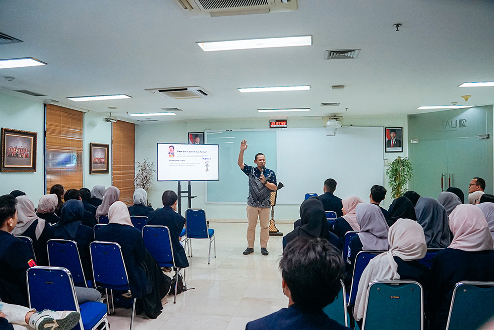 Sesi terakhir disampaikan oleh Denny Hermawan, S.T., M.Kom., Ketua Program Studi Informatika UAI. Ia membuka materi dengan video singkat tentang kecanggihan AI dan robotika, lalu menjelaskan pentingnya memahami era Revolusi Industri 5.0, di mana kolaborasi manusia dan teknologi menjadi kunci utama.