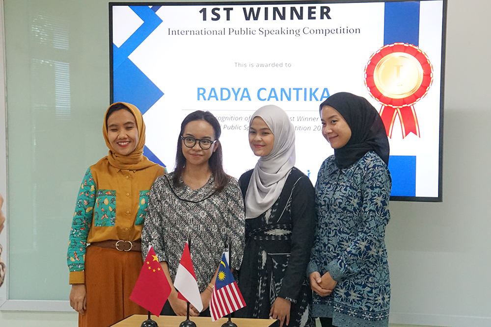 Menindaklanjuti dari babak penyisihan International Public Speaking Competition 2023 yang telah berlangsung pada bulan Februari lalu, kini babak final terselenggara pada Rabu (29/3). Kandidat finalis dari UiTM yang berhasil lolos adalah Wirda Munira Mohammad Azizi (Bachelor in Office Systems Management) dan Aida Khairani Zaidi (Bachelor of Muamalat). Kemudian kandidat finalis dari UAI yang berhasil lolos adalah Radya Cantika (Bahasa dan Kebudayaan Arab 2020) dan Safaa Sabika (Psikologi 2021). Sedangkan kandidat finalis dari Guangxi Minzu Normal University China yang berhasil lolos adalah Liu Biyun (English Education 2020) dan Tan Shuchang (Business English 2022).