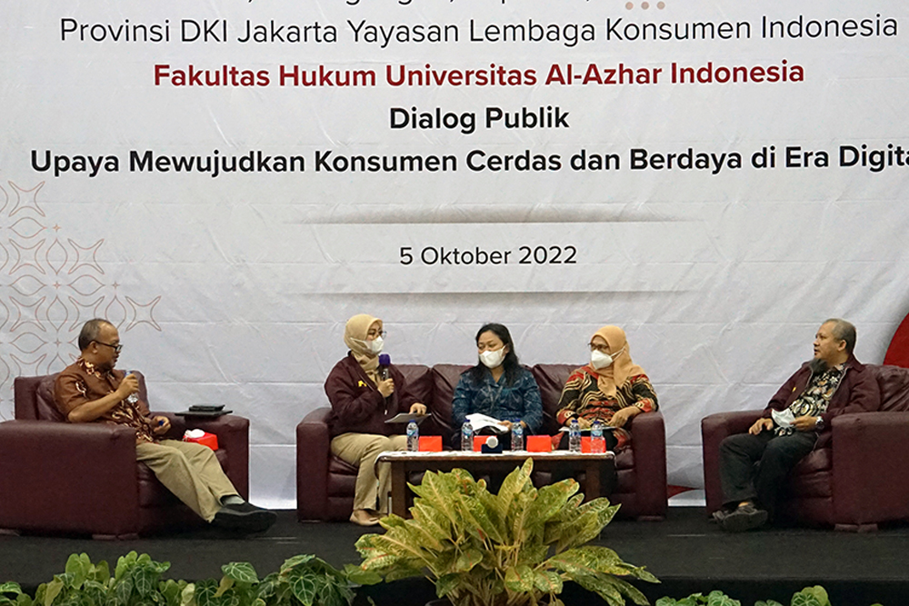 Sebagai bentuk kepedulian terhadap civitas Universitas Al Azhar Indonesia (UAI) khusunya Fakultas Hukum, Yayasan Lembaga Komsumen Indonesia (YLKI) memberikan upaya pemahaman konsumen melalui edukasi pada Rabu (5/10) berupa Diskusi Publik Gerakan Konsumen Cerdas yang dilakukan secara daring melalui Virtual Zoom Meeting. Adapun bahasan diskusi yakni “Upaya Mewujudkan Konsumen Cerdas dan Berdaya di Era Digital”.