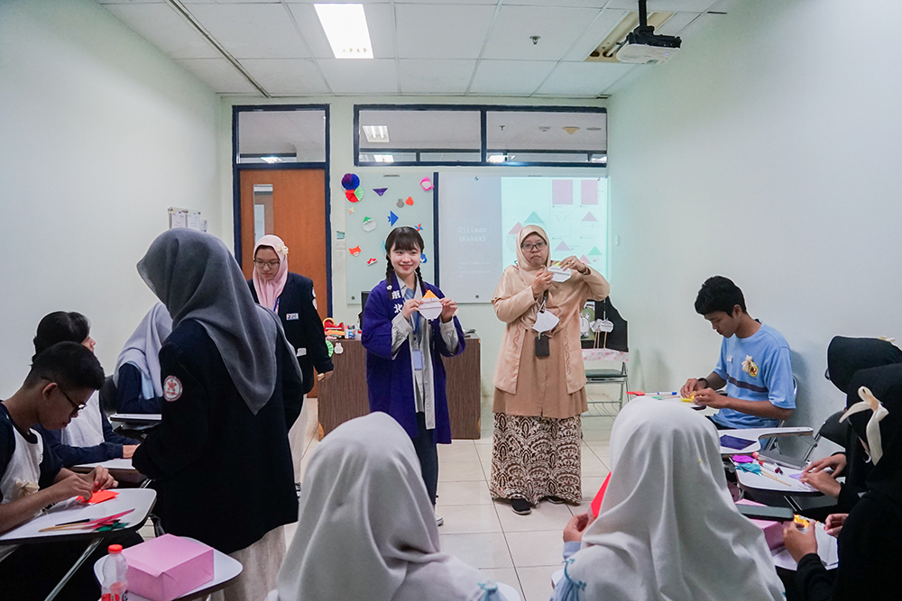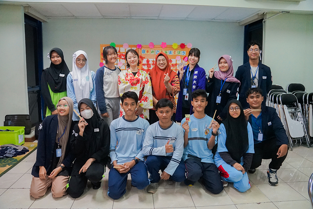 Selama workshop berlangsung, para peserta tampak antusias mengikuti berbagai kegiatan yang ada. Mereka berusaha memahami setiap arahan dengan baik, didampingi oleh mahasiswi Tohoku University yang membantu menjelaskan budaya Jepang secara langsung. Interaksi ini tidak hanya memperdalam wawasan peserta tentang budaya Jepang, tetapi juga menciptakan pengalaman belajar yang menyenangkan dan bermakna.