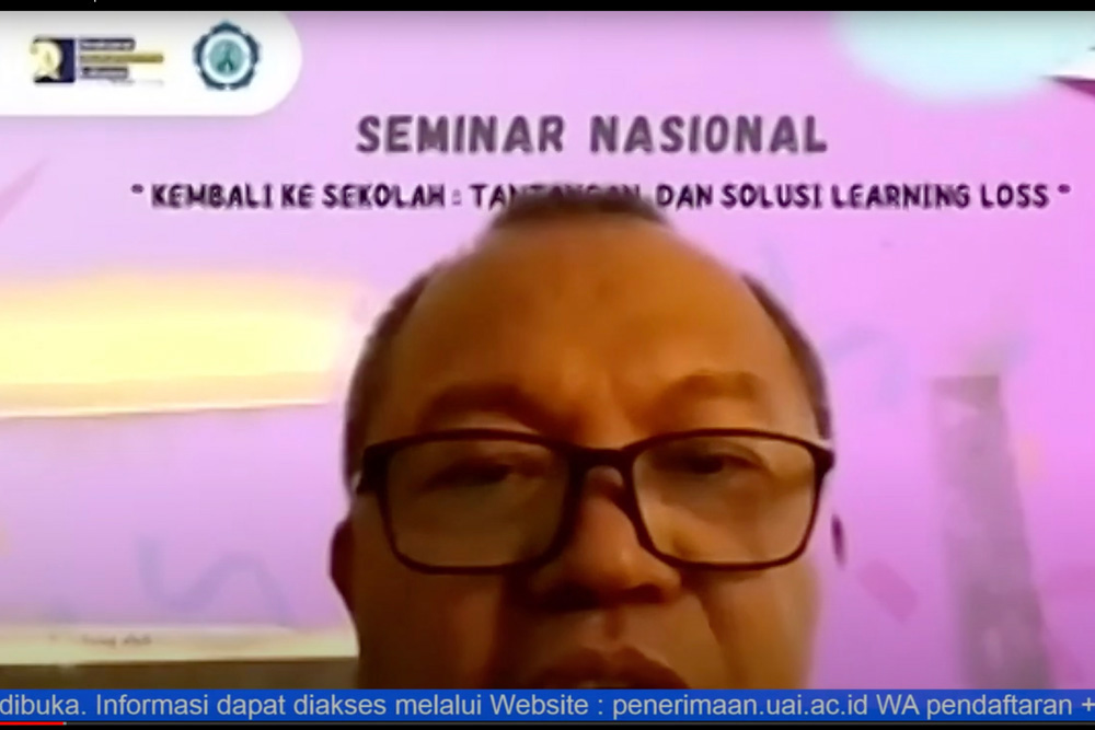Turut hadir sebagai Keynote Speaker, Prof. Dr. Ir. Asep Saefuddin, M.Sc selaku Rektor UAI menyampaikan keresahannya terhadap learning loss.