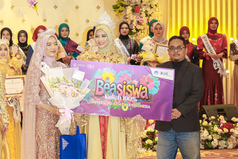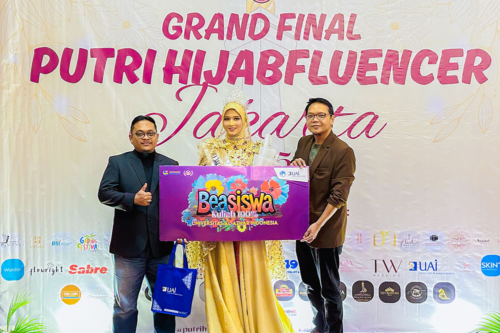 Universitas Al-Azhar Indonesia (UAI) mengucapkan selamat kepada Reisyifa Chantika, pemenang ajang Putri Hijabfluencer Indonesia Provinsi DKI Jakarta Tahun 2025, yang berhasil terpilih dalam Grand Final pada Minggu, 15 Juni 2025. Sebagai bentuk dukungan nyata terhadap pengembangan potensi perempuan muslimah, UAI memberikan beasiswa kuliah 100% kepada sang pemenang.