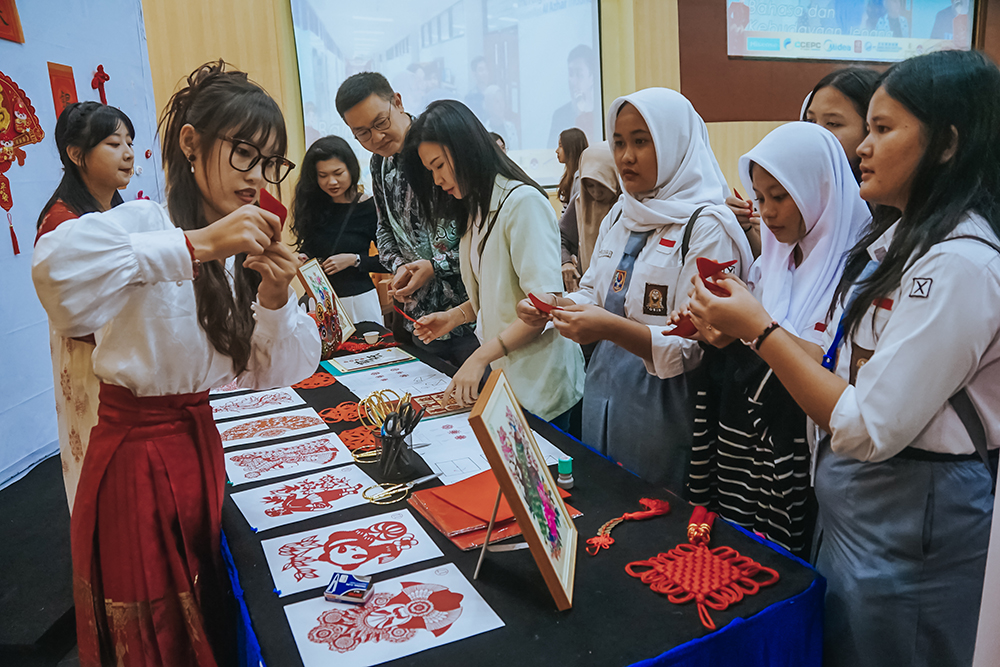 Selain itu, peserta juga diajak untuk merasakan langsung berbagai aspek budaya Tiongkok melalui workshop interaktif. Beberapa kegiatan yang menarik perhatian adalah kaligrafi, permainan tradisional, pembuatan pangsit, prosesi teh tradisional, hingga sesi foto dengan pakaian Hanfu. Antusiasme peserta terlihat dari banyaknya pengunjung yang aktif mencoba setiap aktivitas yang tersedia.