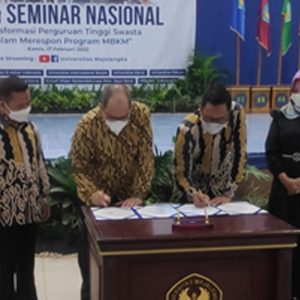 Universitas Al-Azhar Indonesia (UAI) menghadiri Seminar Nasional sekaligus melaksanakan penandatanganan Nota Kesepahaman (MoU) dengan Universitas Majalengka yang berlokasi di Kabupaten Majalengka, Jawa Barat pada hari kamis, 17 Februari 2022. Dalam kunjungan tersebut, UAI diwakili oleh Wakil Rektor IV Bidang Inovasi dan Kerjasama yaitu Bapak Dr. Ir. Ade Jamal dan Kepala Sub Direktorat Kemitraan Bidang Fundraising, Bapak Nova Andrianto Saputra, S.E.