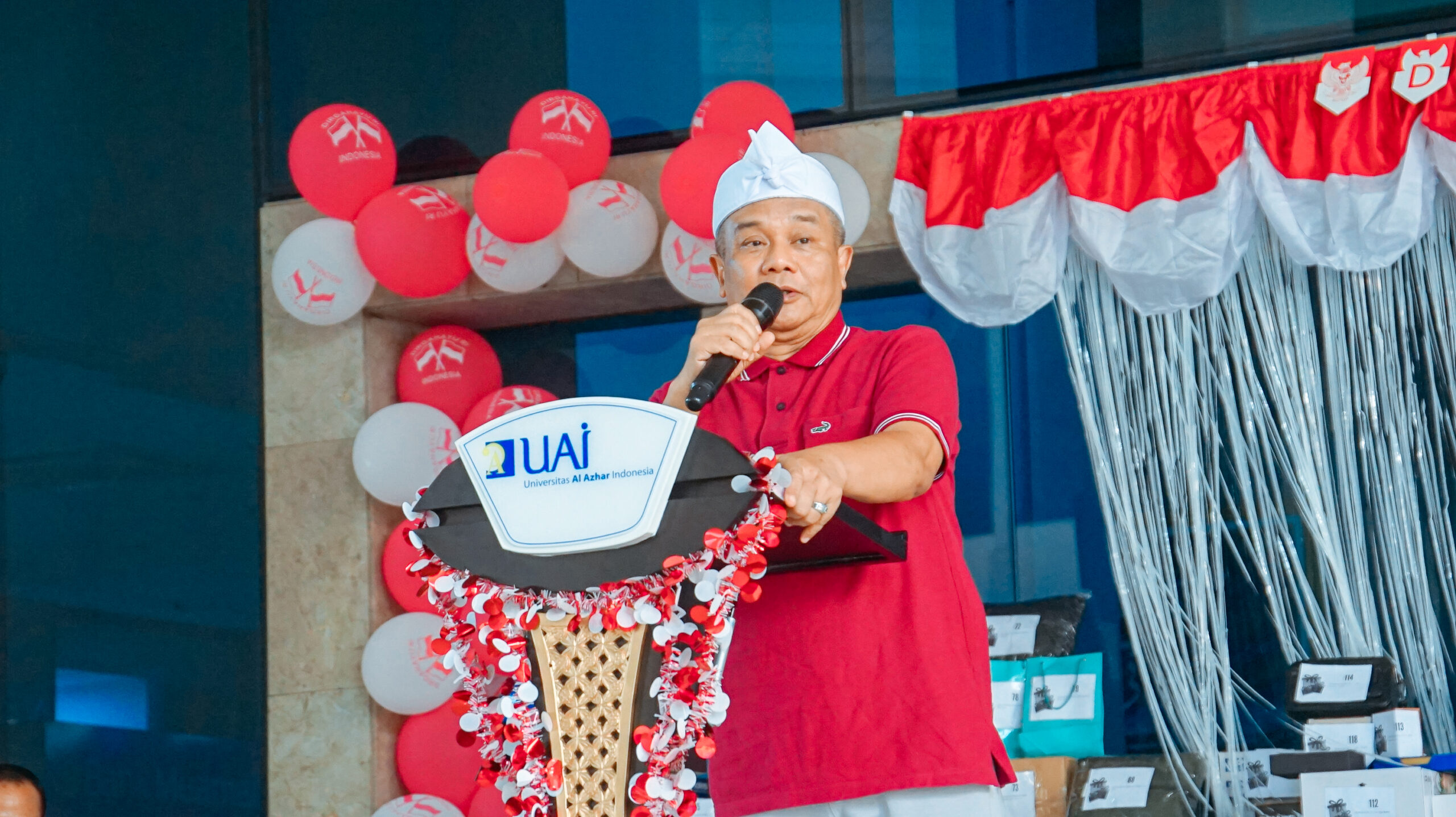 Rektor UAI, Prof. Dr. Ir. Asep Saefuddin, M.Sc., memberikan sambutan sekaligus membuka perayaan kemerdekaan Republik Indonesia. Beliau mengajak seluruh hadirin untuk terus mengisi kemerdekaan Indonesia dengan karya dan kontribusi yang lebih baik. Dalam kesempatan tersebut, Rektor juga menegaskan bahwa bulan Agustus ini bertepatan dengan Milad UAI ke-25. “Di Hari Kemerdekaan ke-80 ini, marilah kita bersama-sama menjadi inspirator bagi bangsa Indonesia. Semoga, di usia 25 tahun, UAI semakin maju dan berkontribusi nyata bagi negeri,” pungkas Rektor.