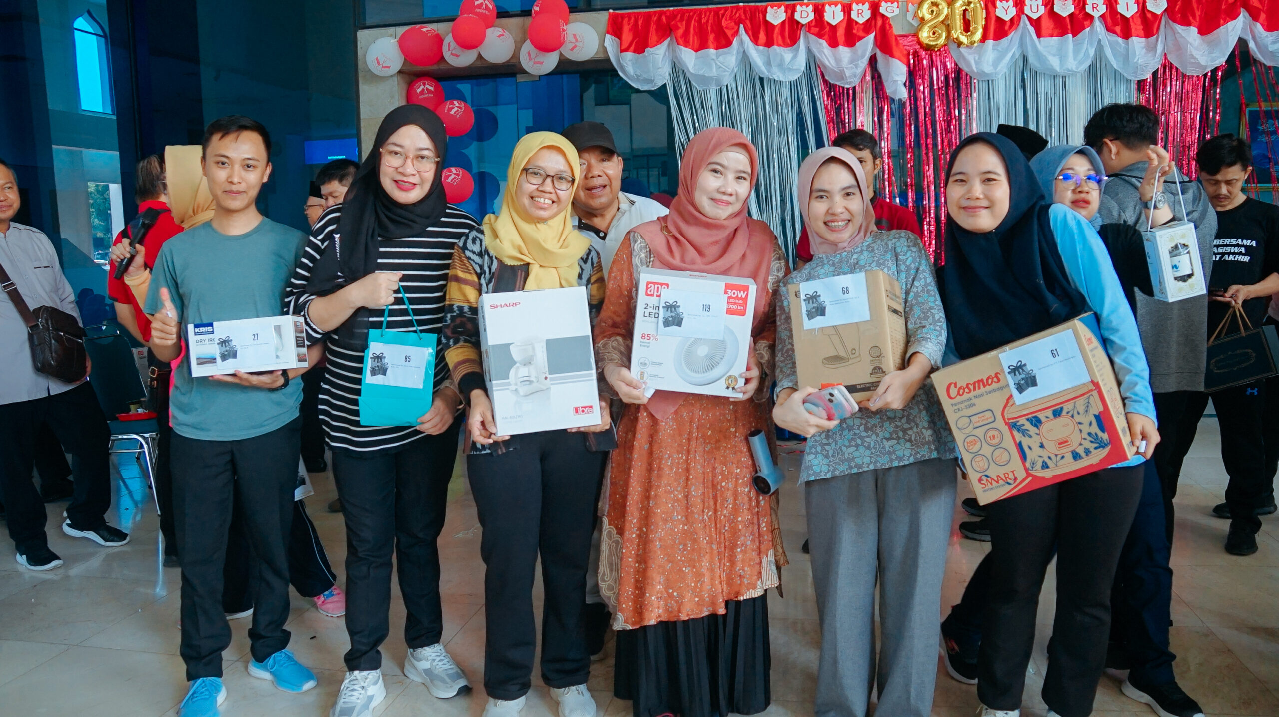 Selain lomba utama, panitia juga menyiapkan berbagai doorprize dan grand prize menarik bagi peserta yang beruntung. Rangkaian acara kemudian ditutup dengan makan siang bersama. Perayaan Hari Kemerdekaan ke-80 Republik Indonesia ini tidak hanya menjadi ajang silaturahmi, tetapi juga mempererat rasa persaudaraan sekaligus menumbuhkan semangat kemerdekaan di lingkungan UAI.