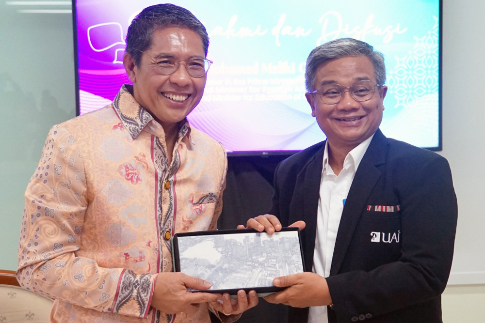 Diskusi berlangsung selama 45 menit dengan dimoderatori oleh mahasiswa Ilmu Komunikasi UAI, Raihan Muhammad Farhan. Dalam opening statement diskusinya, Dr. Malik sebagai narasumber menyampaikan bahwa beliau mengapresiasi hubungan yang kuat antara Indonesia dan Singapura. Indonesia dianggap memiliki sumber daya manusia yang sangat baik, mulai dari kultur, hingga pengalamannya. Diskusi ditutup dengan sesi tanya jawab, penyerahan plakat, dan dokumentasi bersama.