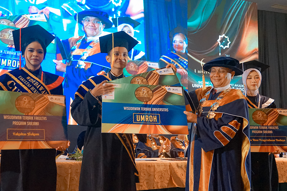 Pada momen istimewa ini, UAI mengumumkan Muhammad Shaddam Rizqullah dari Program Studi Ilmu Komunikasi sebagai Wisudawan Terbaik dan Berprestasi Universitas berdasarkan nilai akademik, prestasi, keikutsertaan dalam karya ilmiah, etika, inspiratif, serta pengalaman organisasi. Sebagai apresiasi, UAI memberikan hadiah berupa kesempatan menunaikan ibadah Umrah.