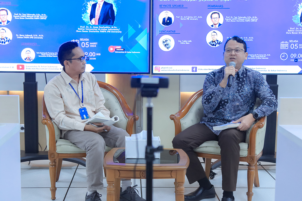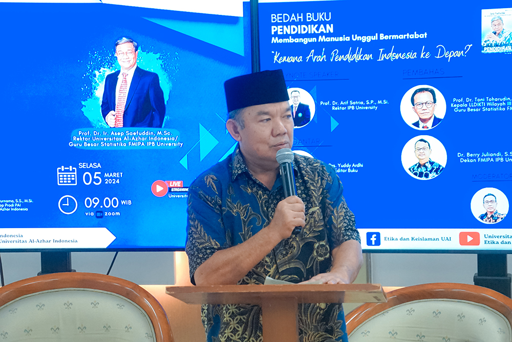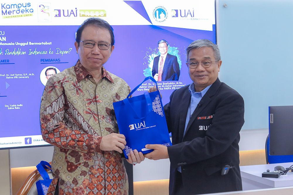Universitas Al-Azhar Indonesia (UAI) menyelenggarakan acara Bedah Buku karya Rektor Universitas Al-Azhar Indonesia, Prof. Dr. Ir. Asep Saefuddin, M.Sc., berjudul “Pendidikan Membangun Manusia Unggul dan Bermartabat”, yang berlangsung secara hybrid di Ruang 317 pada Selasa, 5 Maret 2024. Tema acara bedah buku “Pendidikan Membangun Manusia Unggul dan Bermartabat”, mengambil tema “Mau Kemana Pendidikan Indonesia ke depan?”. Bedah buku “Pendidikan Membangun Manusia Unggul dan Bermartabat”, dihadiri oleh para pimpinan UAI, perwakilan Yayasan Pesantren Islam (YPI) Al-Azhar, dan tamu diluar UAI. Tamu luar UAI yang hadir serta mengisi acara bedah buku yaitu Prof. Dr. Ir. Arif Satria, M.Si., sebagai Keynote Speaker, Dekan FMIPA IPB University, Dr. Berry Juliandi, S.Si, M.Si., Editor Buku, Drs. Yuddy Ardi, dan Mantan Ketua DPR-RI tahun 2009-2014, Dr. H. Marzuki Alie, S.E., M.M.