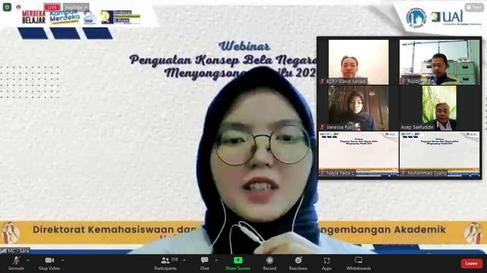 Jum’at, 9 Desember 2022, Universitas Al Azhar Indonesia mengadakan kegiatan webinar Bela Negara, webinar ini terselenggara atas kerajasama Direktorat Kemahasiswaan dan Alumni dengan Direktorat Pengembangan Akademik Universitas Al Azhar Indonesia. Kegiatan yang mengambil tema Penguatan konsep Bela Negara dalam menyongsong pemilu 2024 ini dilaksanakan secara daring (on line) dan dihadiri oleh sekitar 390 peserta yang terdiri dari Sivitas Akademika Universitas Al-Azhar Indonesia dan peserta dari perguruan tinggi lain (dalam dan luar DKI Jakarta).