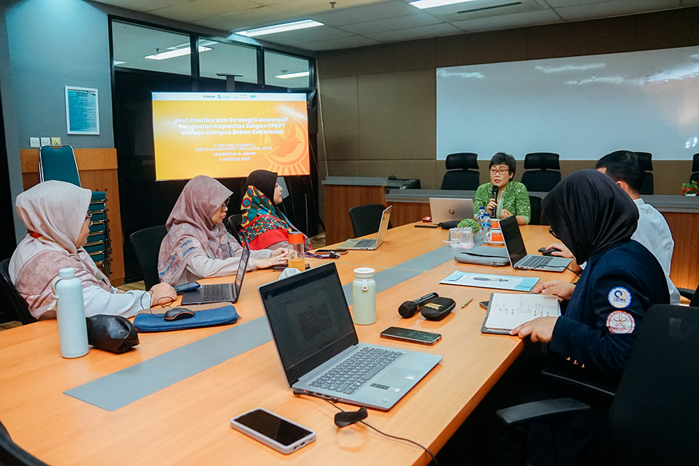 Workshop Satgas PPKPT UAI menghadirkan narasumber dari Universitas Katolik Indonesia Atma Jaya, dr. V. Dwi Jani Juliawati, M.Pd., Sp.KKLP. Pemateri membawakan dua materi, yaitu “Best Practice Penguatan Kapasitas Satgas PPKPT” dan “Strategi Kolaboratif Menuju Kampus Bebas Kekerasan”. Melalui diskusi ini, Anggota Satgas PPKPT UAI diajak untuk memahami langkah-langkah konkret dan kolaboratif dalam menangani dan mencegah kekerasan di lingkungan perguruan tinggi.